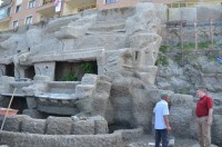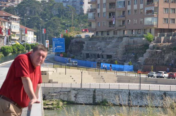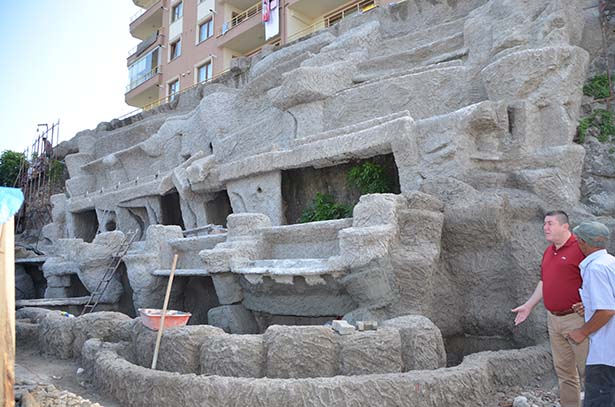 Çalışmaları yerinde inceleyen Alaplı Belediye Başkanı Nuri Tekin, 50 metre boyunda, ortalama 7,5 metre yüksekliğindeki kademeli-kaskatlı yapay şelalenin inşaatı tamamlandığında ilçe girişine ayrı bir güzellik kazandıracağını kaydetti.