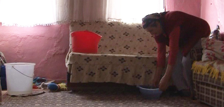 Zonguldak'ın Baştarla Mahallesi'nde yaşayan 66 yaşındaki Fatma Demirbaş, oğlu Şükrü Demirbaş, gelini Havva Demirbaş, iki torunuyla birlikte iki sene önce çıkan yangında kısmen yanan 100 yıllık eski evde yaşamaya çalışıyor. Fatma Demirbaş, iki yıl önce evin kısmen yandığını ve maddi imkansızlık yüzünden tamir edemediklerini söyledi. Her yağmur yağdığında evlerinde kova ve leğenlerle evde koşuşturan Fatma Demirbaş, şöyle konuştu: "Evimizin çatısı sac levha kaplı. Üzerine naylon serdik. Bu sene yaptıramadık. Yağmur evin içine girdi. Kova ve leğenler koydum. Çatı kaç senedir akıyor. Her sene naylon koyuyoruz. Onu rüzgar kaldırınca tenekeler yırtılıyor. Çatıyı yaptıramadım. Bir emekli maaşımız var. Oğlum 3 aydır işsizdi. Evde torunlara bakıyorum. Yük sırtımda olduğundan sıkıntı çekiyorum. Tavan arasına çıkamıyorum, bir çıkarken düştüm ve elim kırıldı. Evde su nereden akarsa leğenleri ve kapları oraya koyuyorum. Yağmur yağmasın diye dua ediyorum. Yatarken üzerimize su damlıyor. Çok mağdur durumdayım. Çatımızın yaptırılmasını istiyorum. Çatımı yaptırmak için devletimizden halkımızdan yardım bekliyorum. Torunum hasta ameliyat oldu. Sıkıntısı hâla bitmedi. Çok mağduruz." Eşinin daha önce tazminat alıp borçlarını kapatmak için gönüllü olarak 14 yıldır çalıştığı işini bıraktığını söyleyen Havva Demirbaş, sözlerini şöyle sürdürdü: "Eşim bir haftadır şoförlük işine başladı. Üç aydır işsizdi. Aşırı derecede borca girdi. Tazminat alabilmek için işini bırakmak zorunda kaldı. Elimizde para olmadığı için kredi kartı kullandı. Ödeme yapamadığı için mağdur oldu. Çocuk ve ev ihtiyaçlarını kredi kartıyla alıyordu. Daha sonra borçları ödeyebilmek için işini bıraktı. Aldığı tazminat borçlarına yine yetmedi. İki çocuğum var yardım bekliyoruz." Çatının aktığını ve çok mağdur olduklarını dile getiren Havva Demirbaş, sözlerine şöyle devam etti: "Bizim yağmur yağdığı zaman çatımız komple akıyor. Halılar kanepeler ıslak yatacak yer bulamıyoruz. Pencerelerden soğuk geliyor. Çocuklarım gece üşüyor. Sobam eski korkudan gece kömür atamıyorum." YAŞADIKLARINI ANLATIRKEN AĞLADI Evlerinin iki sene önce kısmen yandığını ve hâla yaptıramadıklarını ifade eden Havva Demirbaş, şunları söyledi: "Sabah uyurken büyük oğlum 'anne ev yanıyor' dedi. Baktık ev yanıyordu. İki oğlumu zor kurtardım. Halılarım, kanepelerim, perdelerim yandı. Çocukları kurtarırken, yüzü, saçları ve kirpikleri yandı. Valiliğe başvurduk bize 70 TL bedel verdiler. 70 TL benim hiçbir açığımı kapatmadı. Benim banyomda cam yok. Kapı ve çerçeveler dökülüyor. Çok mağdur durumdayız." Fatma Demirbaş, yaşadığı sıkıntıları anlatırken gözyaşlarına hakim olamadı.
