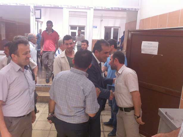 Demirtaş ve beraberindekiler burada ilk olarak Genel Maden İşçileri Sendikası (GMİS) Armutçuk Şube Başkanı Ali Eşitmez'i makamında ziyaret etti.
