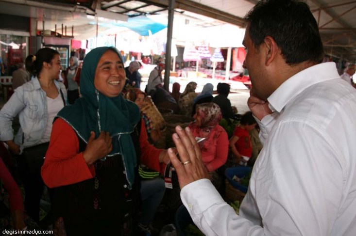 CHP'nin programında hem tarıma, hem emeklilere, hem asgari ücretlilere, hem de işsizlere yönelik projeler var. Emeklilerimiz ve asgari ücretlimizin yaşam koşullarını iyileştirerek, işsizlerimiz için iş bularak burada ticaretini yapan köylülerimizi rahatlatacağız. Biz şunun bunun için değil, onlar için varız. Çalışan, üreten, hakça paylaşan bir Türkiye istiyoruz. Yaşanacak bir Türkiye'yi onlar için kuracağız.