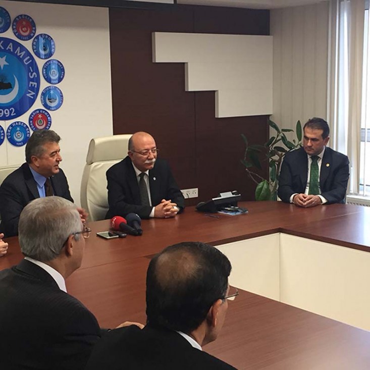 Komisyonu, Türkiye Kamu-Sen Konfederasyonu'nda Genel Başkan İsmail Koncuk ile birlikte, Türkiye Kamu-Sen'e bağlı sendika yöneticileri karşıladı.