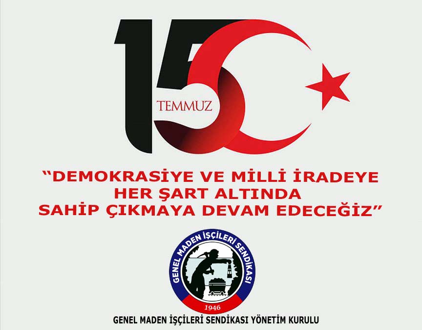 Genel Maden İşçileri Sendikası (GMİS) Genel Başkanı Hakan Yeşil, 15 Temmuz Demokrasi ve Milli Birlik Günü nedeniyle Yönetim Kurulu adına yaptığı açıklamada, 15 Temmuz 2016 tarihindeki darbe girişimini bir kez daha lanetlediklerini belirterek, “Demokrasiye ve milli iradeye, her zaman ve her şart altında sahip çıkmaya devam edeceğiz” dedi.
