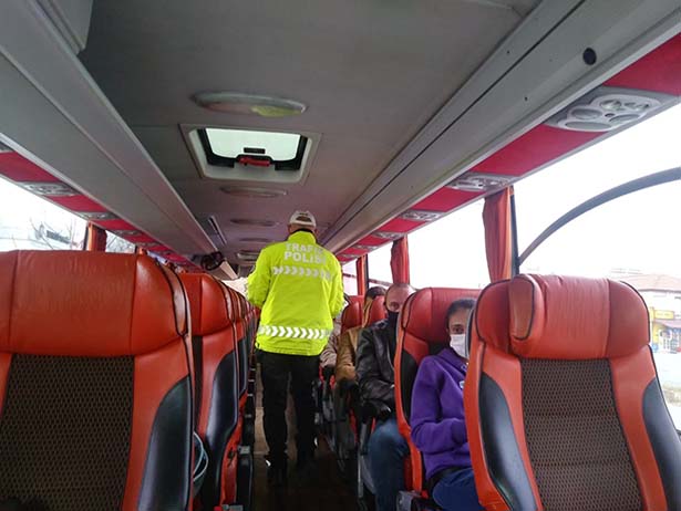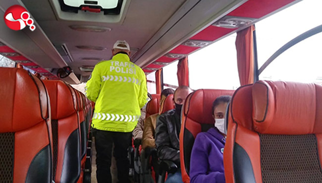 Uygulama çerçevesinde, durdurulan sürücülerin evrakları ve korona virüs tedbirleri denetlendi. Ekipler şehirler arası yolcu taşımacılığı yapan araçlara HES kodu listesi kontrolü, maske, sosyal mesafe ve dezenfektan denetimi gerçekleştirdi.