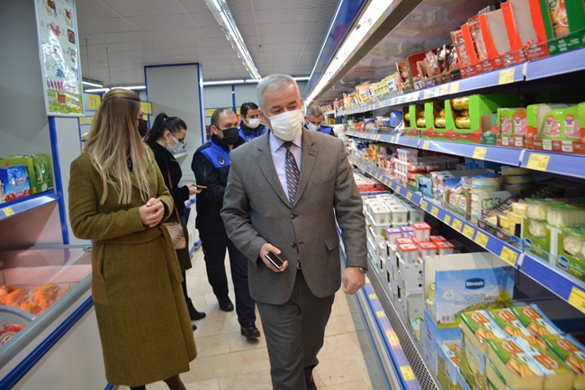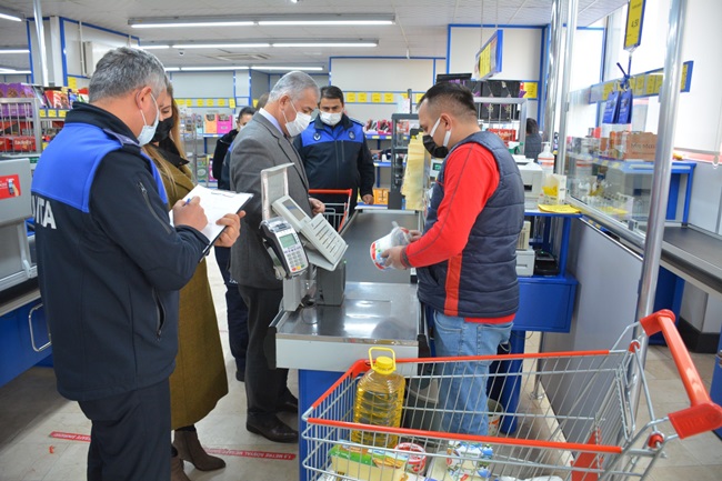 Zabıta Müdürü Halit Aydın’ın koordine ettiği denetimlerde hijyen, gramaj, ambalaj, etiket fiyatları ve pandemi koşulları ile beraber Ticaret İl Müdürlüğü ekiplerinin de katılımıyla fahiş fiyat kontrolleri yapıldı.