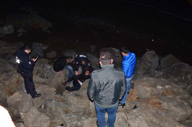 Caddesi üzerinde Kadir S., yaklaşık 2 metre yükseklikten kayalıklara inmek