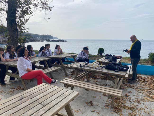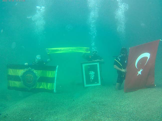 Dron ile havadan da görüntülenen etkinlikte Atatürk portresi, Türk Bayrağı ve Mehmet Çelikel Lisesi'nin bayrağı denizin altında birlikte açıldı. Etkinlik sonunda dalgıçlar ve öğrenciler hatıra fotoğrafı çektirdi.