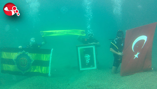 Deniz altında 100. yıla özel bayrak