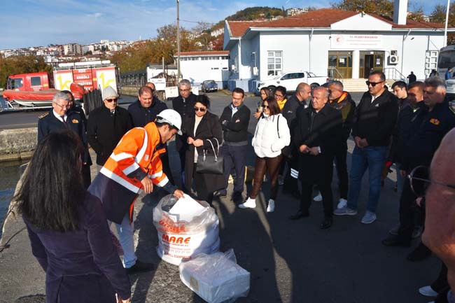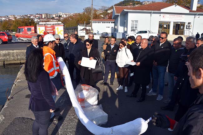 Deniz Kirliliğine Acil Müdahale Tatbikatı gereği, liman içinde oluşan deniz kirliliğine müdahale edildi. Eğitim ve Tatbikat Koordinatörü Çevre Yüksek Mühendisi Mehtap Akbaş tarafından personele kullanılacak malzemeler tanıtıldı, teknik bilgiler aktarıldı.