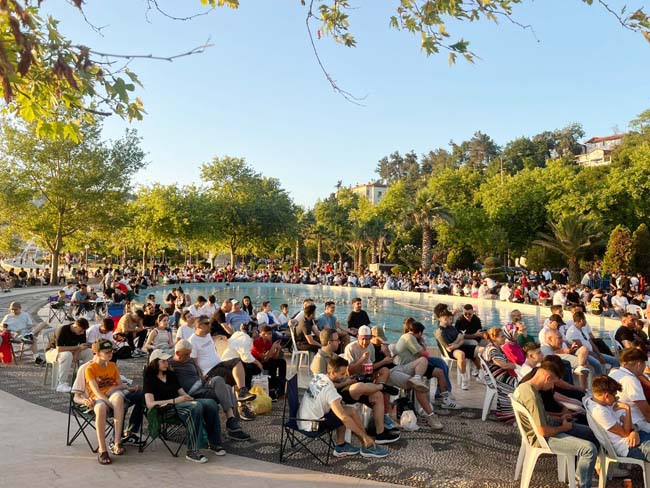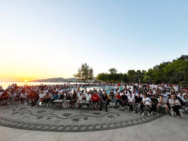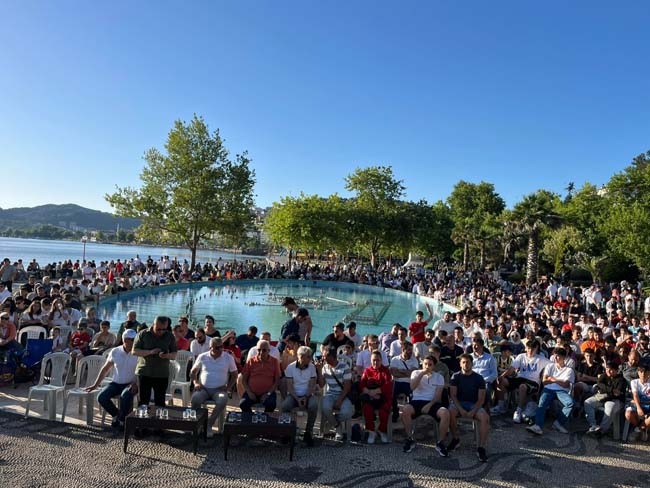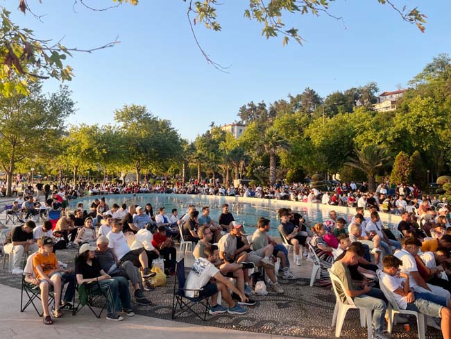 Kdz. Ereğli Belediye Başkanı Halil Posbıyık, eşi Kadın Gücü Kooperatifi Başkanı Neriman Posbıyık ve ailesiyle birlikte maçları takip ederken, sporseverler Türkiye’nin en güzel sahilinde deniz manzarasında maç izlemenin keyfini yaşıyor.