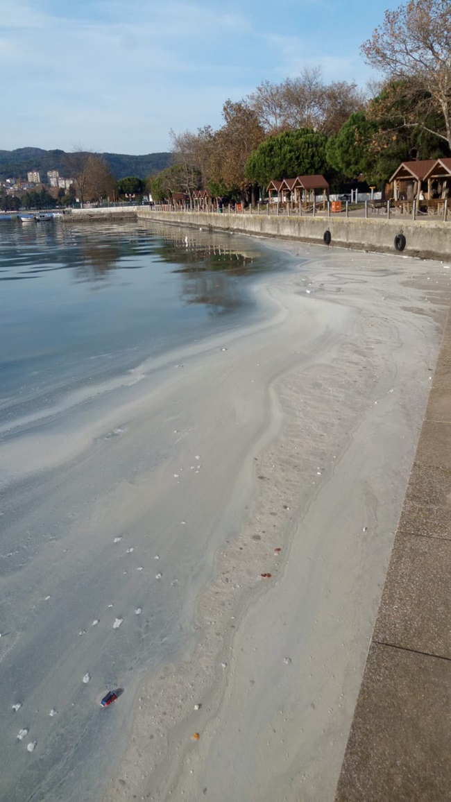 Ereğli Bozhane bölgesinde deniz üzerini beyaz bir tabaka kapladı. Koku'da yapan bu olumsuzluğun nedeni araştırılıyor.