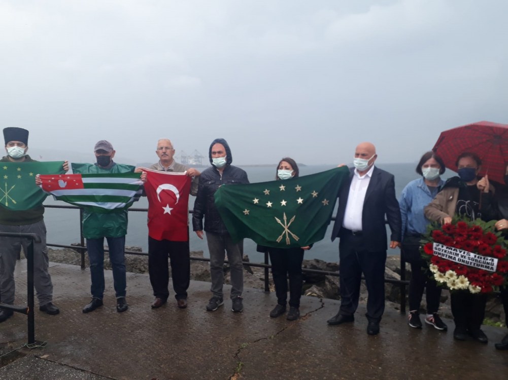 Ereğli Kafkas Kültür Derneği Başkanı Nurten Elkalp ve bazı üyelerin katıldığı törende açıklamayı dernek üyesi Seyfettin Kaya yaptı. Kaya açıklamasında “Bugün 21 Mayıs…. Çerkes halklarının 1864’te uğradıkları sürgün ve soykırımın 157. Yıldönümü. Kuzey Kafkasyalılar 100 yıldan fazla süren Çarlık Rusya’sına karşı verdikleri savunma savaşını, tüm onurlu direnişlerine rağmen kaybetmişler, tarihin en büyük ve en trajik sürgününe maruz bırakılmışlardır. Böylece binlerce yıllık vatanları olan Kafkasya’dan zorla kopartılarak, Osmanlı topraklarına sürgün edilmişlerdir. Sürgünlerin sayısının 1.5 milyondan fazla olduğu, Kafkas-Rus savaşlarında ise yarım milyondan fazla Çerkesin katledildiği tarihi bir gerçektir. Sürgün sırasında; açlık, salgın hastalık ve birçok sebebin dışında, kapasitelerinin çok üstünde doldurulan gemilerin batmasıyla onbinlercesi de yolda ölmüştür. Ereğlimiz açıklarında batan ve 350 kişinin kurtulabildiği, 100 kadarının cesedinin ise Ereğli ve Alaplı sahillerine vurduğu olay ise, belki en basit örnektir. O nedenle diyoruz ki; “Karadeniz, en çok bize karadır.” Günümüzde kültürleriyle var olma mücadelesi veren bizler, her 21 Mayıs’ta olduğu gibi yine bu mâtem günümüzde sürgün ve soykırımda hayatlarını kaybedenleri rahmetle yâd ediyor ve diyoruz ki: “UNUTMAYACAĞIZ, UNUTTURMAYACAĞIZ….”