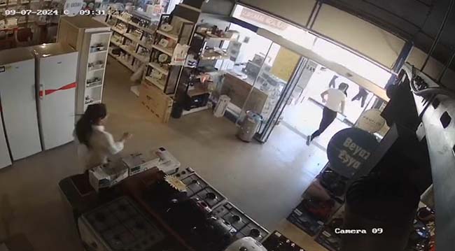 Deprem, kentteki iş yerlerinin güvenlik kameralarına yansıdı. Beyaz eşya satışı yapan iş yerinin güvenlik kamerasına yansıyan görüntülerde deprem anında bulunan insanların panik halde dışarıya kaçtığı anlar da yer aldı.