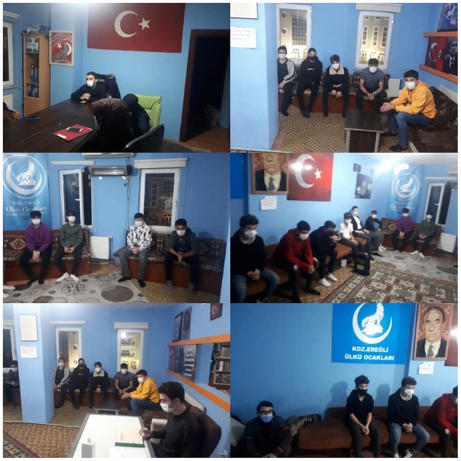 Konuyla ilgili olarak açıklamada bulunan Ereğli Ülkü Ocakları Eğitim ve Kültür Vakfı Başkanı Ufuk Akdeniz Ereğli Ülkü Ocakları olarak, geçtiğimiz günlerde meydana gelen depremde kaybettiğimiz vatandaşlarımız başta olmak üzere, Başbuğ'umuz Alparslan Türkeş ve tüm Aziz Şehitlerimiz için Mevlid-i Şerif okuyarak dualar ettik”