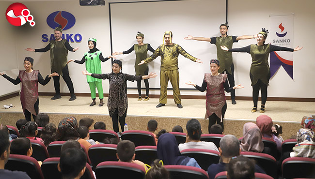 SANKO Üniversitesi sosyal sorumluluk etkinlikleri kapsamında düzenlenen tiyatro oyunu, Adıyaman’da depremden etkilenen çocuklar için SANKO Tekstil İşletmeleri Adıyaman konferans salonunda da gerçekleştirildi.