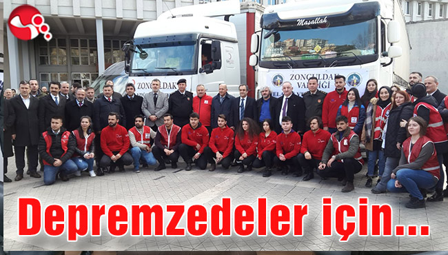 Zonguldak Valiliği önünde gerçekleşen törende konuşan Vali Vekili Turgut Subaşı, "Bu gün burada Elazığ ve Malatya depreminde hayatını kaybeden insanlarımızı rahmetle anarken onların acılarını hafifletmek, dindirmek ve paylaşmak amacıyla Zonguldak Valiliği ve Kızılay Zonguldak Şubesi ile birlikte 4 tır olarak hazırladığı yardım malzemeleri gönderme dolayısıyla bir araya geldik. Bu acıları paylaşmak, hamiyetperver davranışları sergilemek; Malatya ve Elazığ'daki yurttaşlarımızın yalnız olmadığını bildirmek üzere buraya teşrif eden sizlere de teşekkür ediyorum. Depremde canlarını, mallarını kaybeden insanlarımıza devletimiz anında tek vücut olarak yardım etmiştir. Ama elbetteki felaketin büyüklüğü karşısında bu yardımların kesintisiz sürdürülebilir şekliyle devam etmesi gerekmektedir. İnşallah Zonguldak Valiliği, Kızılay, Zonguldak'ın hamiyetperver insanları ayni ve nakdi yardımları AFAD kanalıyla bundan sonra da oradaki yurttaşlarımıza ulaştırılacaktır" diye konuştu.