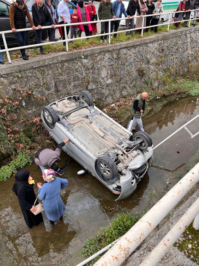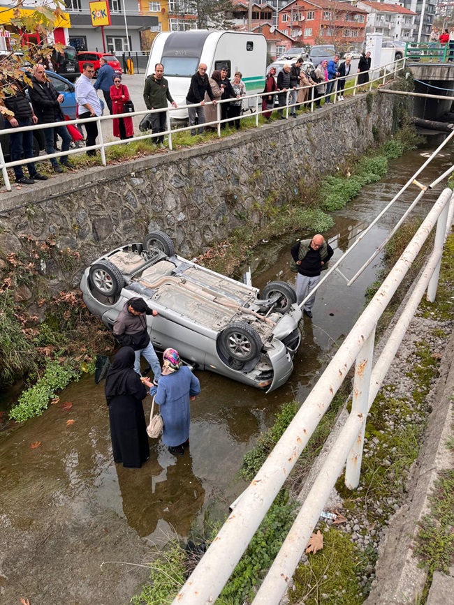Zonguldak’ın Karadeniz Ereğli ilçesinde meydana gelen trafik kazasında otomobil  dere yatağına uçtu.