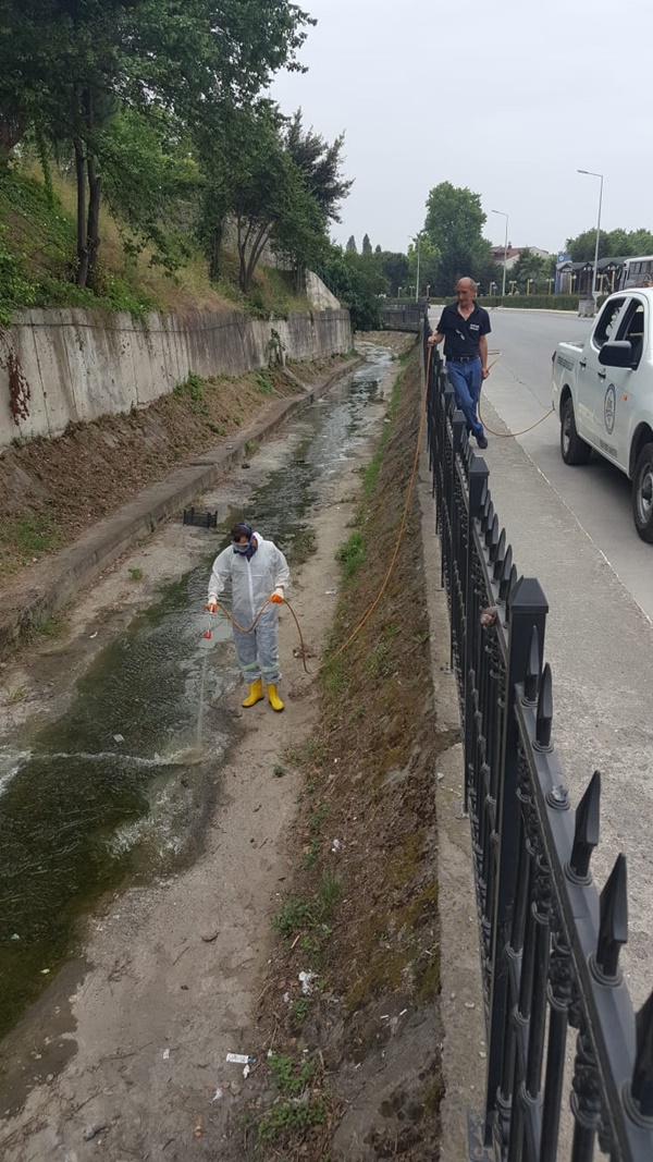Kdz.Ereğli'de dere yatakları belediye ekipleri tarafından sivrisinek üremesine karşı ilaçlanıyor.