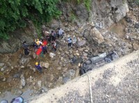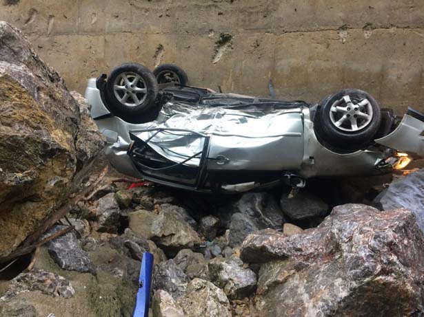 çarpıştı. Otomobil çarpmanın etkisiyle yaklaşık 20 metreden yükseklikten dereye