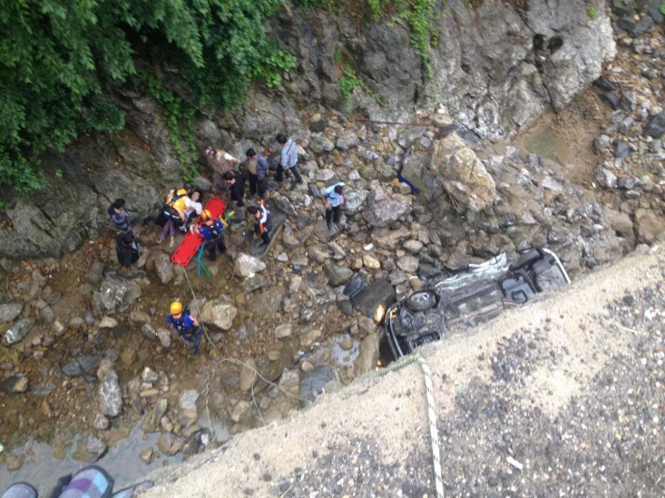 üzerinde 2 araç çarpıştı. Araçlardan biri çarpışmanın etkisiyle dereye uçtu.