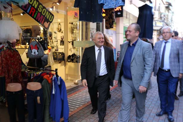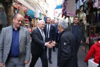 bir araya geldi. Esnaflara hayırlı işler dileklerini ileten Özkan, caddelerde
