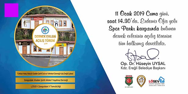 Zonguldak'ın Ereğli ilçesinde Dernek Evleri'nin açılışı yapılacak.