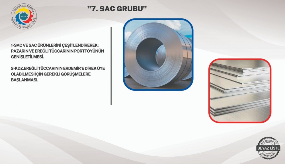 1-Sac ve sac ürünlerini çeşitlendirerek; pazarın ve Ereğli tüccarının portföyünün genişletilmesi