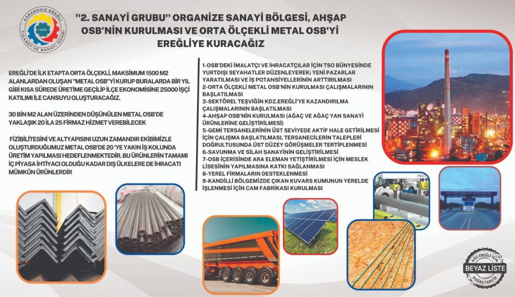 ''2. SANAYİ GRUBU'' ORGANİZE SANAYİ BÖLGESİ, AHŞAP OSB’NİN KURULMASI VE ORTA ÖLÇEKLİ METAL OSB'Yİ EREĞLİYE KURACAĞIZ