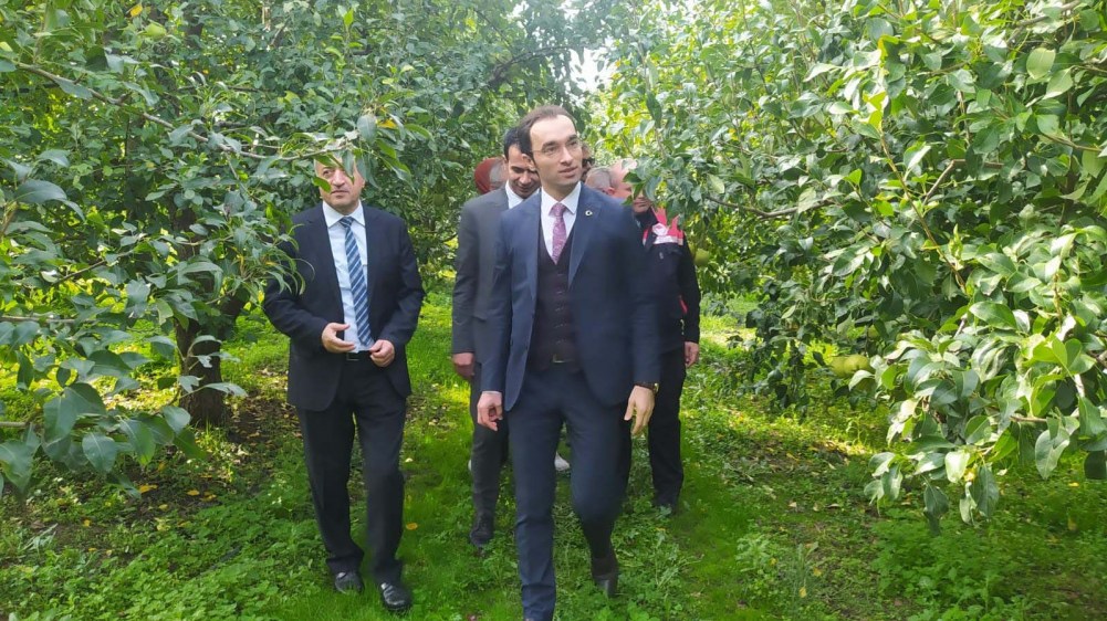 Çaycuma’da Deveci Armudu yetiştiriciliği konusunda diğer çiftçilere örnek olan ve 17 yıldır yetiştiriciliğini yapan bahçe sahibi Hasan Girgin, ağacın fidan halinden meyve verecek duruma gelene kadar geçen süreci anlattı. Bahçede yapılan incelemede sorulan soruları cevaplandırarak hasat hakkında bilgiler verdi.
