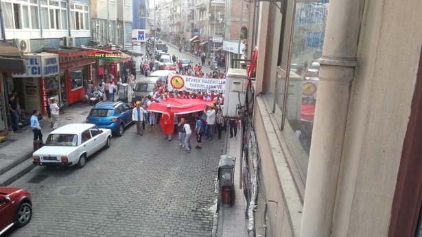 Zonguldak'ın Devrek ilçesinde Devrekli Madenciler Derneği tarafından son günlerde artan terör olaylarını protesto etmek için yürüyüş düzenlendi.