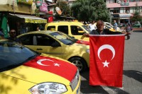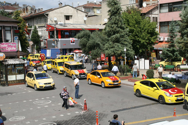 ilçesinde taksiciler son günlerde artan terör olayları sebebiyle araçlarını