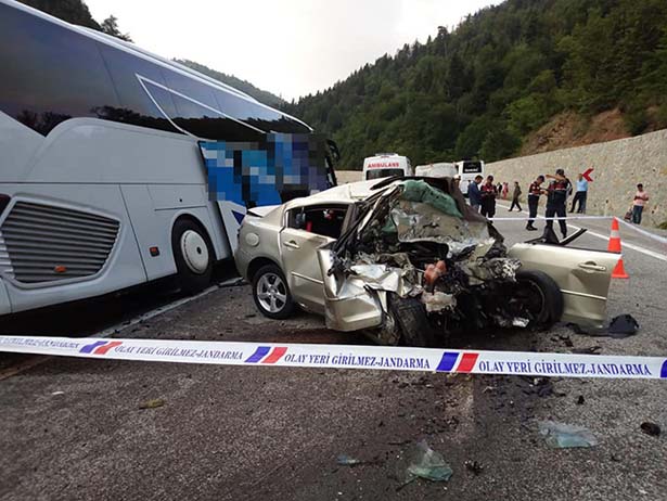 Bolu'nun Mengen ilçesinde, otomobil ile yolcu otobüsü, kafa kafaya çarpışması sonucunda Uzman Çavuş Erkan Öztaşçı hayatını kaybetti.