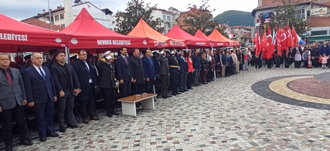 Zonguldak’ın Devrek ilçesinde 29 Ekim Cumhuriyet Bayramının 102. yılı düzenlenen program ile coşku içerisinde kutlandı. Cumhuriyet Alanında gerçekleştirilen etkinliklere, Kaymakam Onur Alp Bıçakçı, Garnizon Komutanı Deniz Yarbay Hüsamettin Çalçoban, ve Belediye Başkanı Özcan Ulupınar tarafından halkın ve öğrencilerin bayramlarını kutlanmasıyla başlandı. Saygı duruşu ve İstiklal Marşı'nın okunmasının ardından İlçe Kaymakamı Onur Alp Bıçakçı günün anlam ve önemini belirten konuşmasından sonra diğer etkinliklere geçildi.