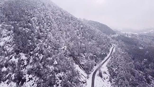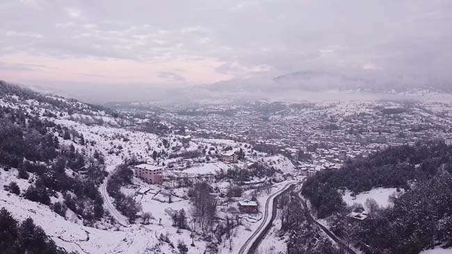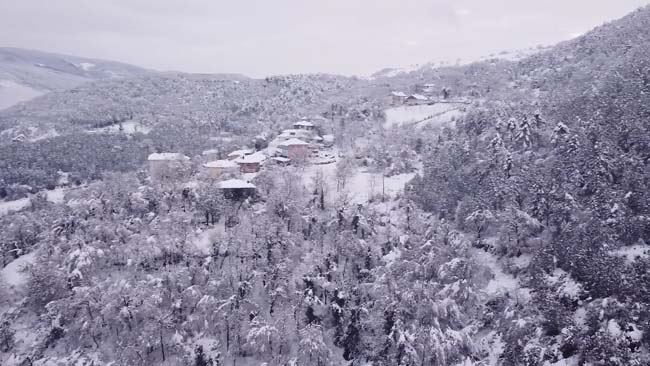 Zonguldak’ın Devrek ilçesinde etkili olan kar yağışı sonrasında manzaralar drone ile havadan görüntülendi.