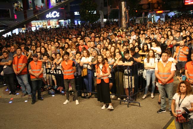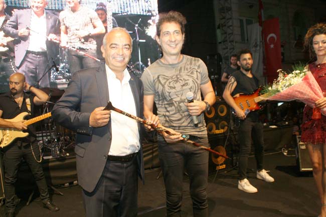 Konserin ardından ünlü sanatçıya, Başkan Çetin Bozkurt tarafından ilçenin simgesi olan Devrek Bastonu hediye edildi.