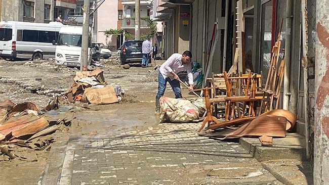 Bazı apartmanların giriş katları su ve balçıkla doldu. Evlerde, bodrum katları ve iş yerlerinde temizlik çalışmaları başlatıldı.