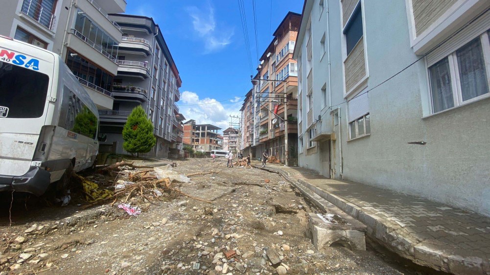 Zonguldak'ın Devrek ilçesinde sel felaketinin ardından yaralar sarılıyor. İlçenin en çok zarar gören Karşıyaka Mahallesi'nde temizlik çalışmaları sürüyor.