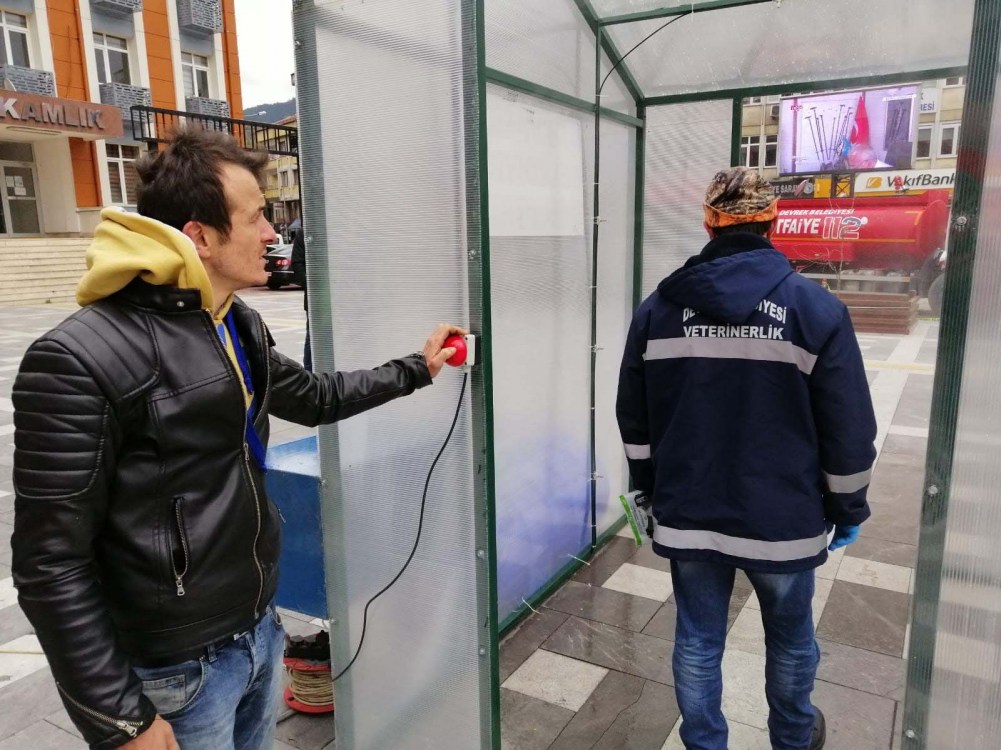Zonguldak’ın Devrek İlçesi Belediyesi tarafından Koronavirüs tedbirleri kapsamında dezenfekte tüneli kuruldu. Koronavirüsle mücadele kapsamında belediye tarafından Cumhuriyet Alanına kurulan kişisel dezenfekte istasyonu vatandaşların büyük takdirini topluyor.