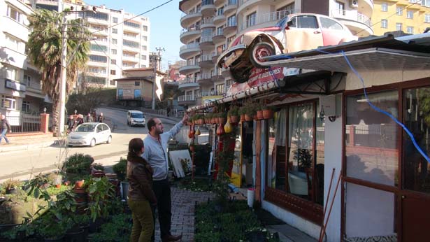 Yayla Mahallesi Kapuz Caddesi üzerindeki kafeteryanın çatısına trafikten çekilme belgeli vosvosu koyan Melih Öztürk, "Amacımız vosvosa dikkat çekmek ve bu araçların koruma altına alınmasını sağlamak. Çatıda vosvos görenler çok şaşırıyor." dedi.