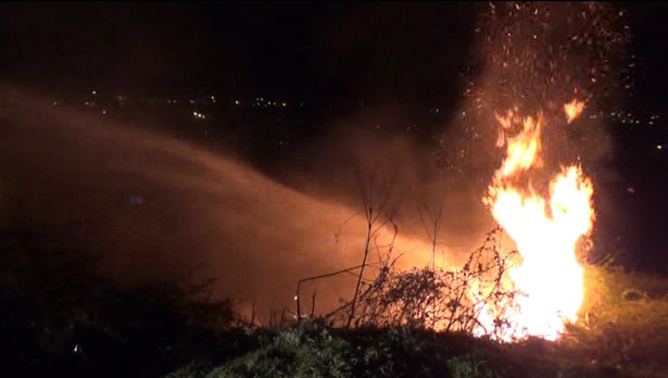 çalılıklara atmasıyla küçük çaplı yangın çıktı.