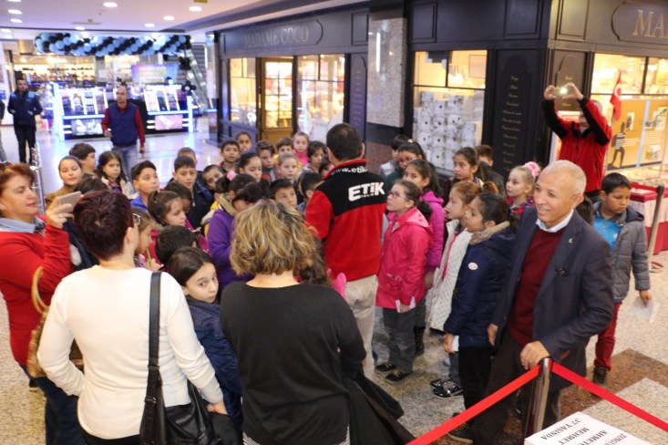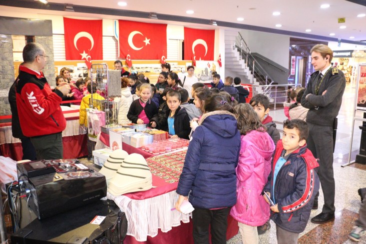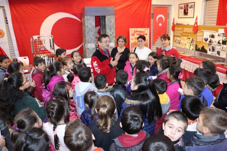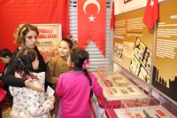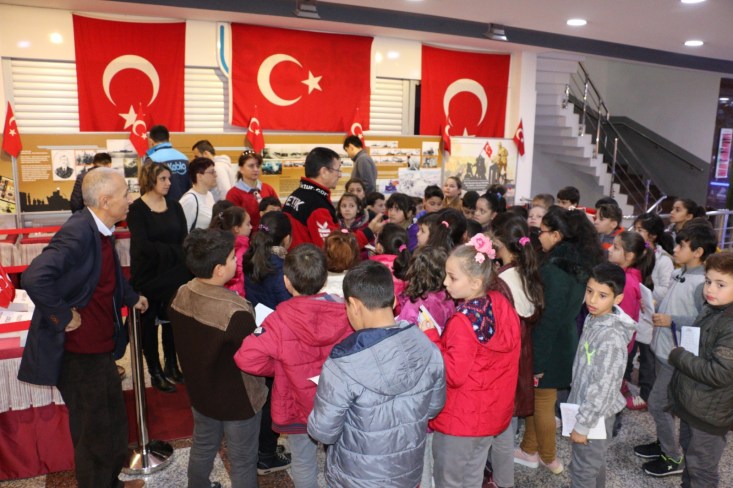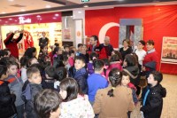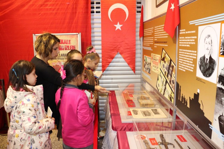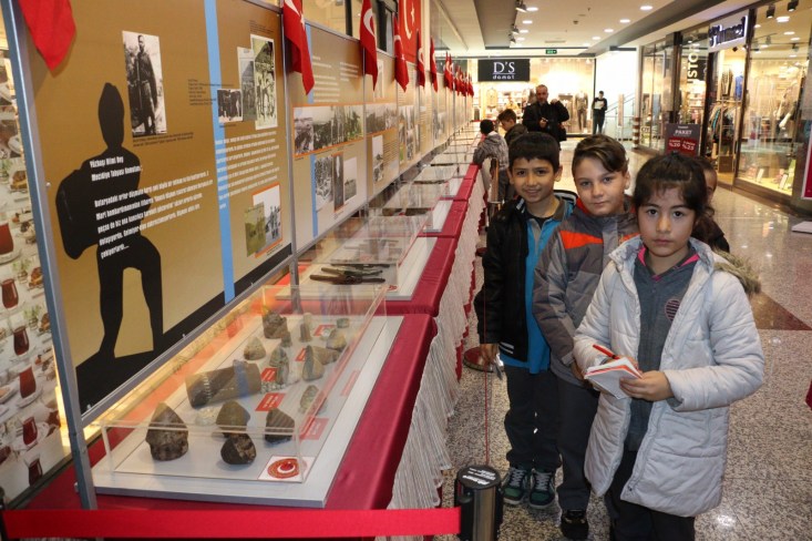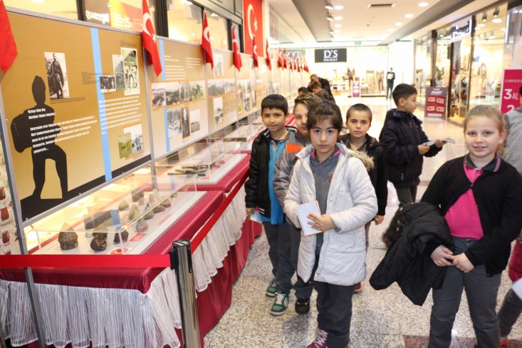 Zonguldak'ın Ereğli ilçesi Dikmen İlkokulu öğrencileri, EREYLİN alışveriş merkezinde açılan 'Çanakkale Savaşı' sergisini gezdi.