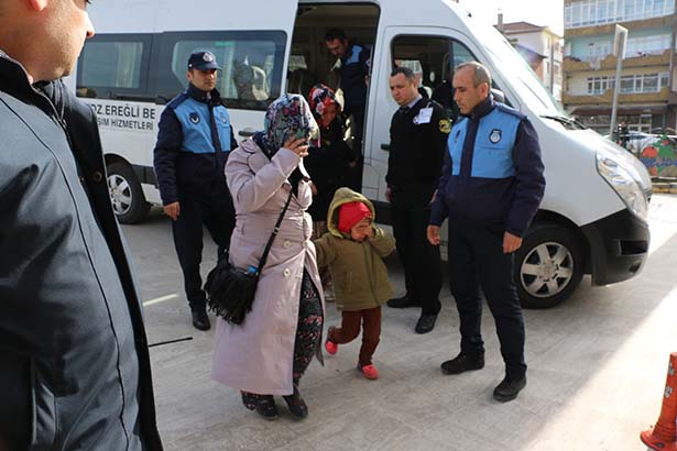 Ereğli' de Cuma namazı öncesi ve sonrasında Belediye Zabıta ve Emniyet Müdürlüğü Çocuk Şube ile Asayiş Büro Amirliği ekiplerinin de katıldığı Dilenci Operasyonu düzenlendi. İlçede camilere dağılan ekipler namaz öncesi ve sonrasında aralarında Suriyeli uyruklular olmak üzere 13'ü bayan, 15'i çocuk ve 4'ü erkek olmak üzere 32 kişiyi yakaladı. Operasyon sırasında karşısında polis ve zabıtayı gören dilencilerden bazıları kaçmaya çalıştı. Kaçan dilenci başka bir zabıta tarafından yakalandı. Yakalanan dilenciler Ereğli Belediyesine ait otobüslerle belediye binasına getirildi. Burada otobüslerden indirilen dilenci kadınlardan bazıları zabıta memurlarının üzerine yürüdü. Üst aramaları tamamlanan dilencilere 105' şer lira ceza kesildiği öğrenildi. Yakalanan Suriye uyruklu kadın, erkek ve çocuklar polis eşliğinde ilçe dışına gönderildi.