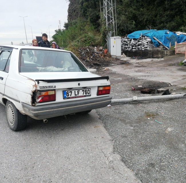 Karadeniz Ereğli ilçesinde sürücüsünün kontrolünden çıkan otomobil direğe çarparak durabildi.