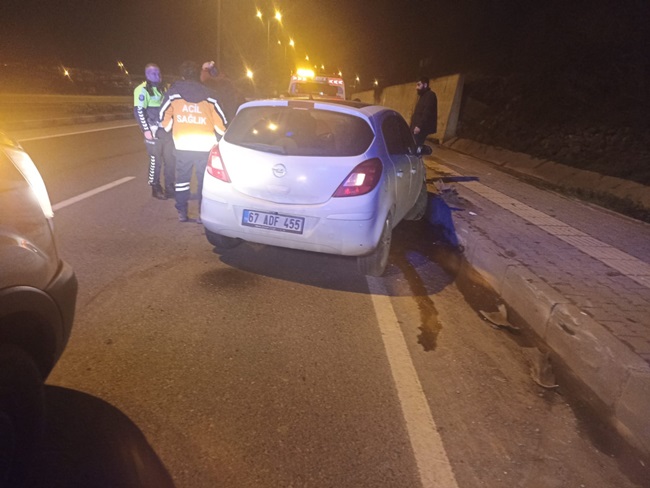 İddiaya göre; S.T. idaresindeki 67 ADF 455 plakalı otomobil, sürücüsünün direksiyon hâkimiyetini kaybetmesi sonucu kaldırma çarptı. Kazada yaralanan sürücü için sağlık ekiplerine haber verildi. Olay yerine gelen 112 ekipleri yaralı sürücüye yaptıkları ilk müdahalenin ardından hastaneye kaldırdı. Kazada sürücü S.T. nin 100 promil alkollü olduğu öğrenildi.