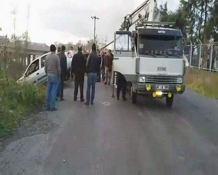 hasar oluşan otomobil ise olay yerine çağırılan çekici vasıtası ile dereden