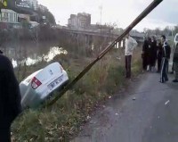ilçesinde direksiyon hakimiyetini kaybeden otomobil sürücüsü dereye uçtu.
