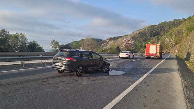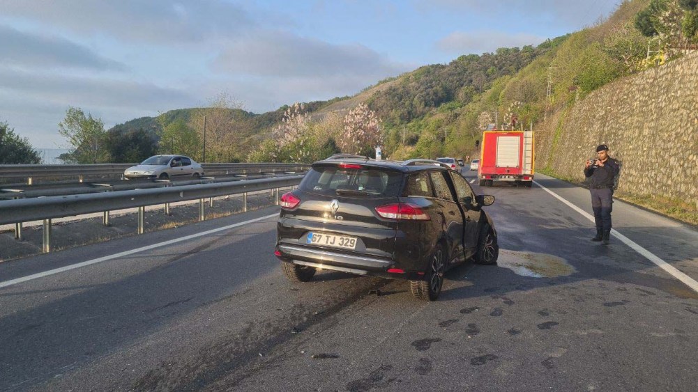 Alaplı Akçakoca karayolu Belediye Plajlar mevkii yakınlarında 67 TJ 329 plakalı otomobil, Alaplı İstikametine hareket halindeki sürücü Çağrı Ö.’nin direksiyon hakimiyetini kaybetmesi sonucu kontrolden çıkan araç, bariyerlere çarparak durabildi.