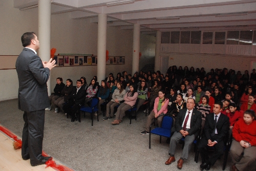 Zonguldak Ereğli´de İlçe Milli Eğitim Müdürlüğü ve İl Emniyet Müdürlüğü, ortaklaşa ´Öğrencileri Şiddetten ve Uyuşturucu Maddelerden Koruma ve Önleme´ konulu seminer düzenledi. Kız Teknik ve Meslek Lisesi´ndeki seminerde konuşan Çocuk Şubesi polis memurlarından Turan Semiz, son yıllarda teknolojinin gelişmesiyle birlikte suç oranlarının da arttığını söyledi. Özellikle internet, telefon ve dizilerin olumsuz örneklerinden bahseden Semiz, öğrencilerin anne ve babalarıyla olan ilişkilerinin de önemine değindi.