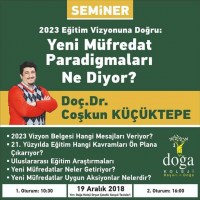 Zonguldak'ın Ereğli ilçesinde hizmet veren Doğa Koleji, 2023 eğitim vizyonuna doğru Yeni Müfredat Eğitim Paradigmaları Ne Diyor?" konulu seminer, akademisyen Doç. Dr. Coşkun Küçüktepe tarafından gerçekleştirilecek.