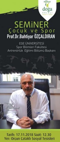 Prof. Dr. Bahtiyar Özçaldıran, Kdz. Ereğli Doğa Koleji'nde 'Çocuk ve Spor' adlı seminer verecek.