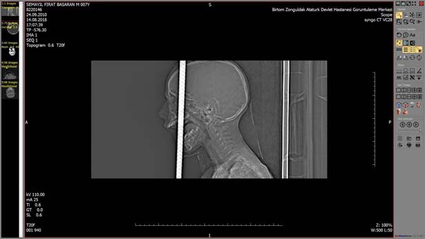 Merkezine sevk edilen 7 yaşındaki Fırat Başaran'ın başındaki 1 metre
